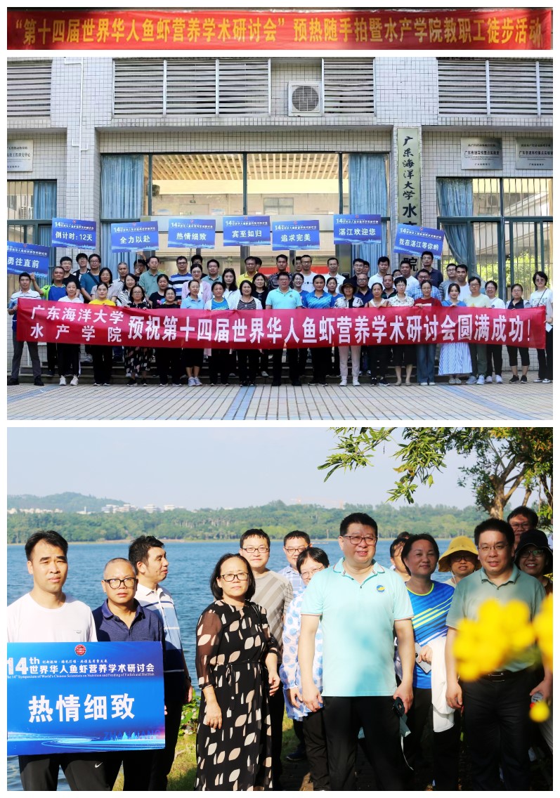 由世界华人鱼虾营养学术研讨会学术委员会主办,WilliamHill中文官方网站承办,广东恒兴饲料实业股份有限公司、广东海大集团股份有限公司和广东粤海饲料集团股份有限公司联合承办的第十四届世界华人鱼虾营养学术研讨会(简称“世华会”)定于2023年11月6日―10日在广东湛江举行。10月25日下午,为保证第十四届世界华人鱼虾营养学术研讨会(简称“世华会”)各项工作高质量完成,增强教职工的责任感和紧迫感;同时,为持续推进全民健身活动引向深入,倡导文明健康的生活方式,william威廉中文官网工会举办第十四届“世华会”预热随手拍暨william威廉中文官网教职工湖光岩徒步活动,副董事长谭北平、william威廉中文官网全体院领导及教职工参加活动。